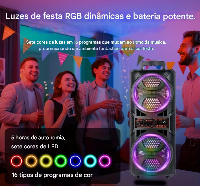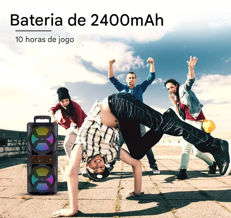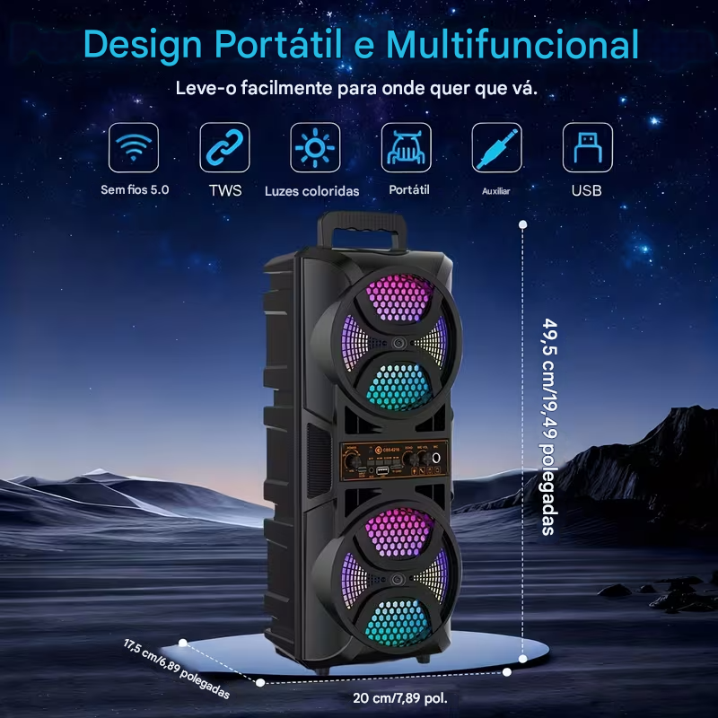 Caixa de Som Portátil Sem Fio Bluetooth com Microfone com Fio e Controle Remoto