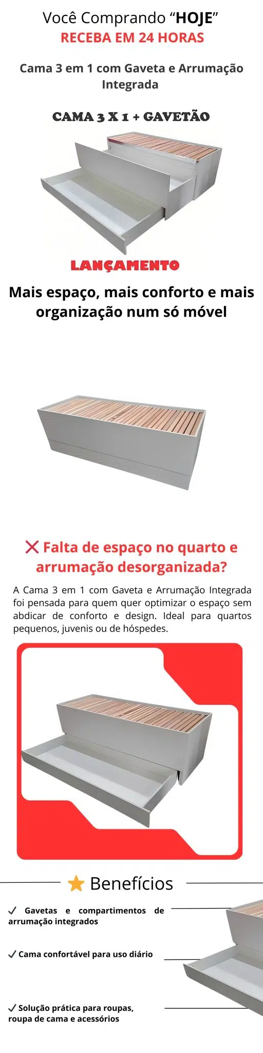 | Medida do colchão auxiliar | 88 × 188 cm (Solteiro) |