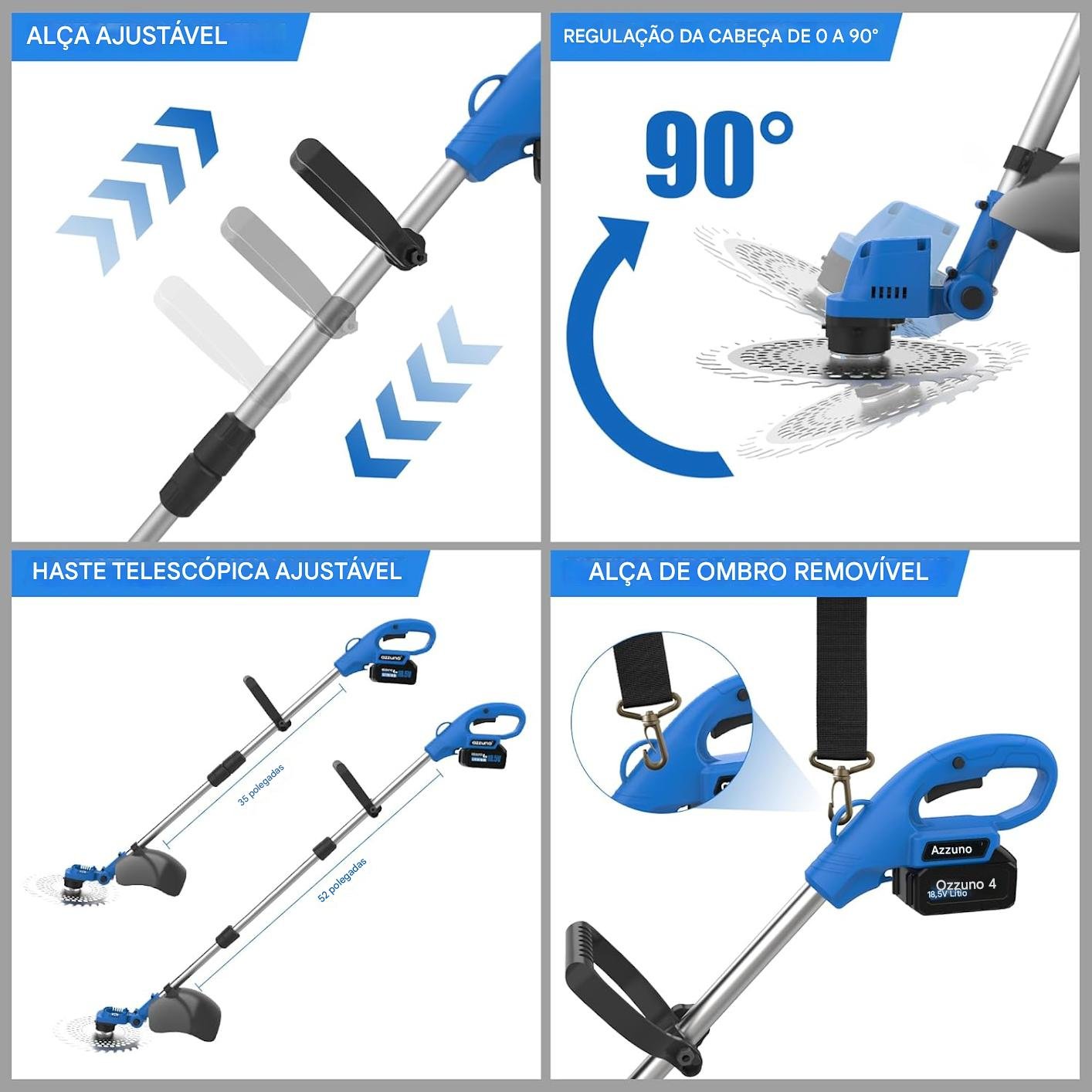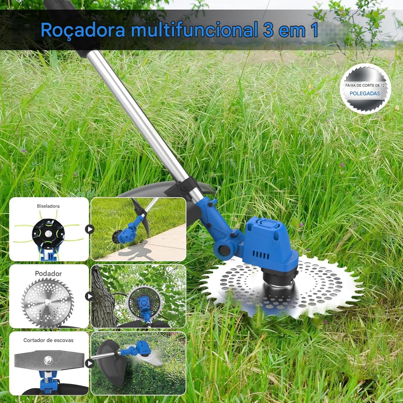 Roçadora elétrica sem fio AZZUNO 21V de 12 polegadas, leve e alimentada por bateria